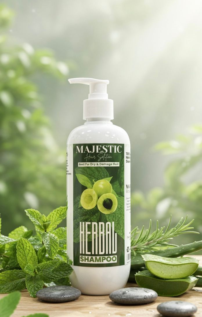 A nourishing herbal shampoo enriched with natural extracts that gently cleanses, strengthens, and revitalizes hair for a soft, shiny, and healthy look.